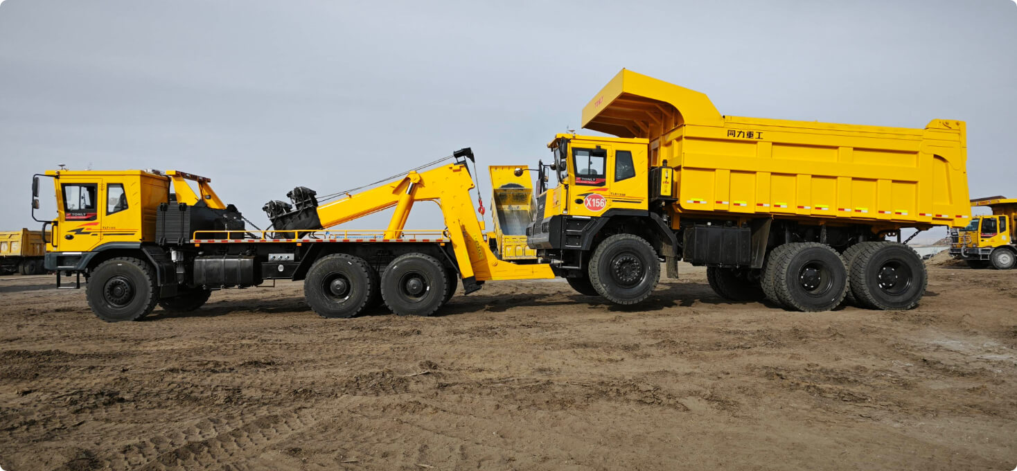 拖牽效率高:配置成套專(zhuān)用可更換拖車(chē)工裝,滿(mǎn)足不同型號(hào)寬體自卸車(chē)的拖牽,拖車(chē)接口“即插即用”。