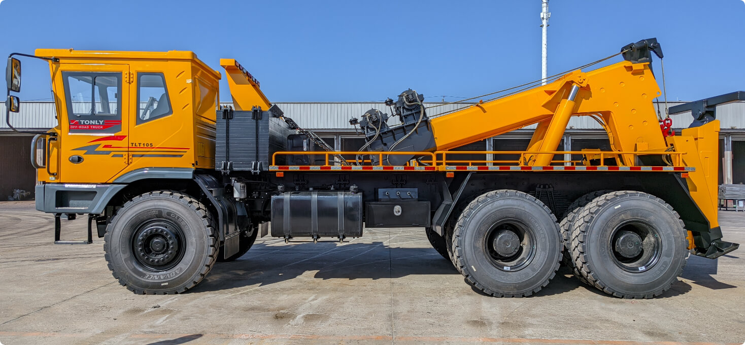 礦山專(zhuān)用:針對(duì)非公路工況下寬體自卸車(chē)的拖牽轉(zhuǎn)場(chǎng)專(zhuān)項(xiàng)研發(fā)設(shè)計(jì),底盤(pán)完全適用礦山工況,滿(mǎn)足在礦山各種復(fù)雜道路情況下將故障寬體車(chē)從作業(yè)區(qū)拖牽至維修廠(chǎng)。